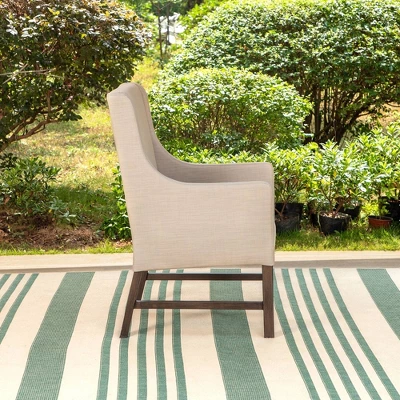 [CAPTIVA DESIGNS] Upgrade your outdoor dining setup with this set of 2 armrest patio chairs boasting a modern yet classic design. Handcrafted for durability, they feature an E-coating and powder-coated metal frame, thick padding for comfort, and rust & water resistance. Easy to clean with no special care needed, they offer hassle-free relaxation in your outdoor space.FEATURES