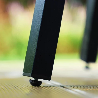 The small side table is made of steel. Matte powder-coated black finish frame, UV and fade resistant. Skid resistant feet for uneven ground and against floor scratching.