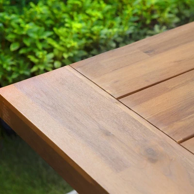 Make your outdoor space more welcoming with this 6-piece simple patio dining set. Made from acacia wood, this set is constructed with simple lines. Fusing modern and contemporary style to a more classic and traditional style, while maintaining an overall simple design. The bench can provides room for more people, so everyone can come and eat at the table to enjoy being outside.
