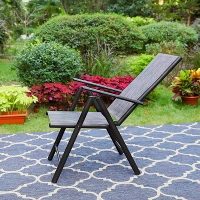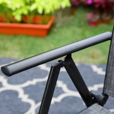 - Chairs are constructed from the marriage of padded textilene sling fabric and aluminum frame