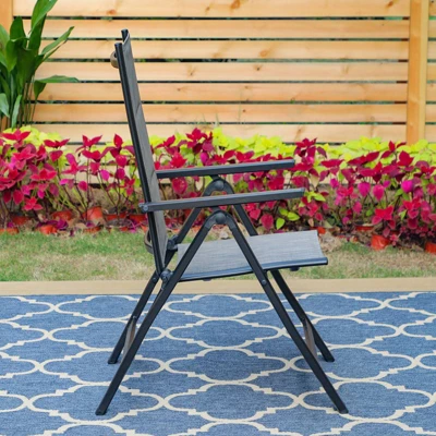 - Chairs are constructed from the marriage of padded textilene sling fabric and aluminum frame