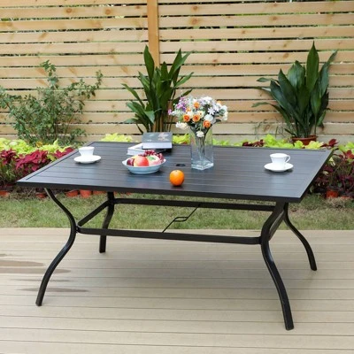 - Dimensions of table L60″xW38″ x H28″ umbrella hole D 1.57″