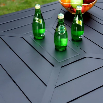 Our patio set is the ideal modern furniture for your outdoor living. With precise lines and a well-made structure, this set not only brings a chic, minimalistic look but also offers incredibly pleasant feeling.