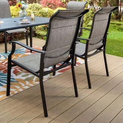 Easy-to-clean textilene sling fabric seats are padded for extra comfort. Heavy-duty Powder-coated metal frame prevent rusting and extend longevity.