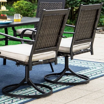 This chair from Captiva Designs is designed and constructed according to the ergonomics. The U-curve armrest ,3 steel bottom brackets and triangle structure supports the stability. Ergonomic curve back offers the extra comfort when you sit on it.Black and selective all-weather PE rattan and powder-coated steel frame jointly present the elegant and graceful look. It serves perfectly for outdoor or indoor.