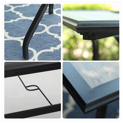Woodlike table top, E-coating frame, this patio table makes the time you spend enjoying your outdoor living spaces more comfortable and welcoming