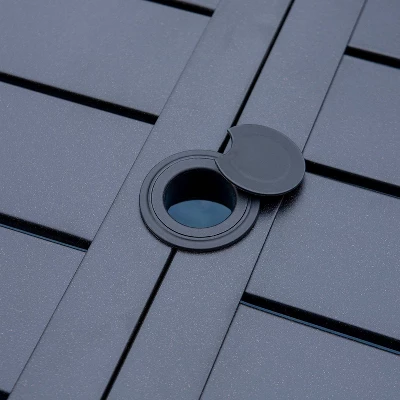 The rectangle metal outdoor dining table wears a rustic and attractive look. It is elaborately hand painted. Its large table top is faux woodgrain finished which is durable, water and weather resistant. The special table features X-crossed legs and adjustable screws that offers extra stability and durability.