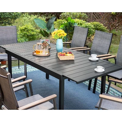 This premium steel extensible table offers comfy feeling when it serves as a dining table from Captiva Designs.It accommodates 6 or 8 seats around.The steel metal is powder-coated and strong enough for a long time serving.Classic pattern design gives elegant and beautiful look.It is a perfect choice for outdoor and indoor applying.