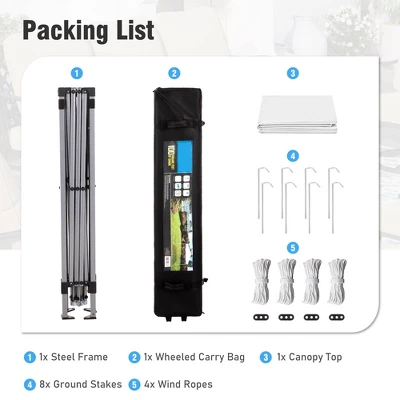 [CAPTIVA DESIGNS]Experience the ultimate outdoor comfort with our 10’ x 10’ Outdoor Pop-Up Canopy Tent! Perfect for camping, tailgating, or any outdoor event, this portable sun shelter offers generous shade and ventilation to keep you cool and relaxed. Crafted with durable materials and designed for quick, one-person setup, you can easily transport it in its compact wheeled carrying bag. Its lightweight construction makes it a breeze to carry, while the included stakes ensure stability on various terrains. Enjoy your outdoor adventures with confidence, knowing you’re protected from the sun and light rain. Make every gathering memorable with this stylish and reliable canopy!Dimensions: