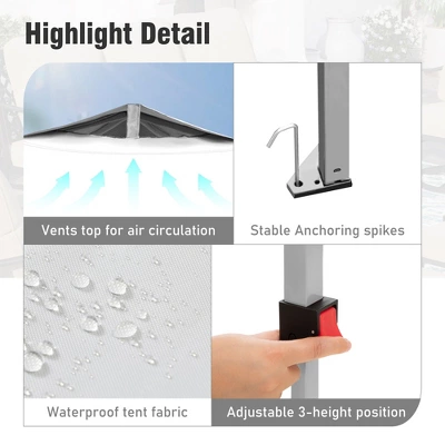 - Vented Top Design: Enjoy improved airflow with a vented top, keeping you cool while providing 100 square feet of shade for 10 or more people.