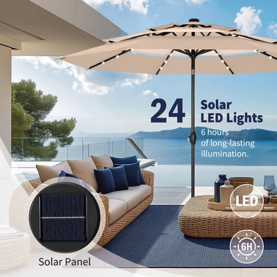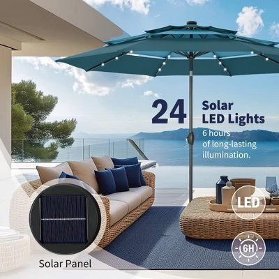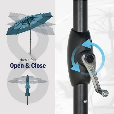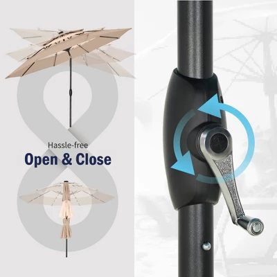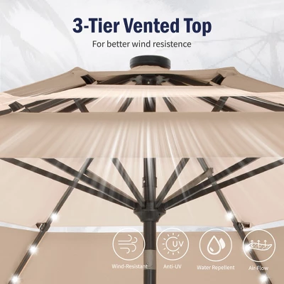 - 3-Tier Ventilated Design: This patio umbrella features a practical 3-tier vented top that promotes air circulation, helping to reduce heat and providing greater stability on windy days compared to standard umbrellas.
