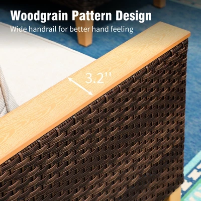 - Spacious and Deep Seating Design: The wide and deep seat design, complemented by natural wood-grain-inspired wide armrests, creates an outdoor comfort zone that seamlessly combines comfort and aesthetics.