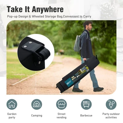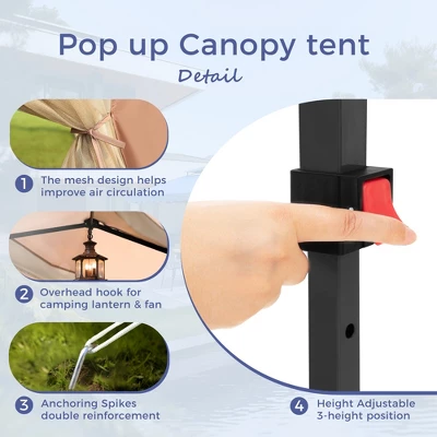 Elevate your outdoor experience with the Captiva Designs 10×10 ft Pop-Up Canopy Tent, designed for versatility and convenience. Featuring removable mesh sidewalls, this canopy keeps bugs at bay while providing easy access through zippered entrances. The intuitive design includes an overhead hook for hanging lanterns or fans, along with multiple power cord entrances, making it ideal for lighting and cooling solutions outdoors. Quick to set up without the need for tools, this tent can be ready in just 15 minutes and accommodates one or two people. The high-quality silver-coated fabric offers UPF 50+ protection, blocking 99% of harmful UV rays while remaining flame-retardant for added safety. With a vented top for improved air circulation and a durable roller bag for easy transport, this canopy tent is perfect for any outdoor event. Enjoy peace of mind with a 365-day satisfaction guarantee against damage or missing parts.
