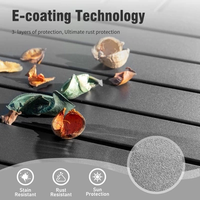 - Slat Tabletop: The table features a stylish slat tabletop design, adding an elegant touch to your outdoor space and making cleaning a breeze.