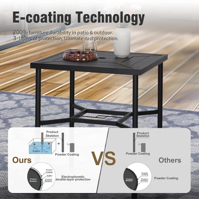 - Durable & Functional: Crafted with a rust-resistant E-coating steel frame and featuring a 1.57″ umbrella hole for added shade, along with adjustable foot pads for stability on uneven surfaces.