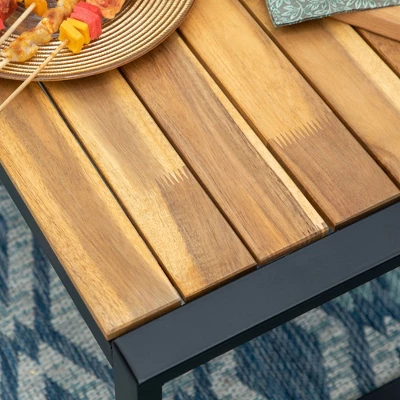 - Solid Wood Coffee Table: The solid wood tabletop, paired with a metal frame, provides a smooth and stable surface. The natural wood grain of acacia wood adds a rustic charm to this outdoor furniture set.