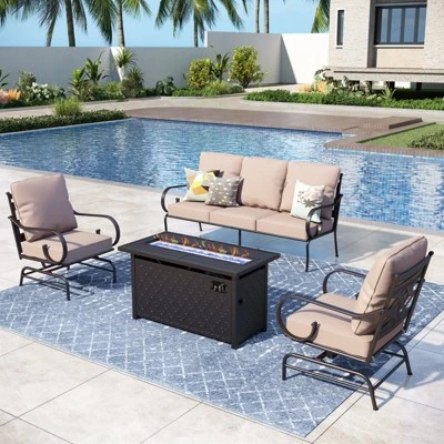 Captiva Designs 4pc Extra Large Metal Outdoor Patio Fire Pit Set With Rocking Pattern-back Chairs