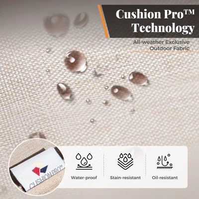 Sturdy All-Metal Frame: Constructed with a robust full steel frame, each seat supports up to 350 lbs. The dual-layer e-coating and powder coating ensure superior rust resistance, durability, and long-lasting performance.Luxurious Cushions: The 5.75″ thick cushions are filled with 28D non-phenol foam, offering exceptional support and resilience for lasting comfort. The back cushions provide excellent lumbar support, making it perfect for hours of relaxation.Cushion Pro® Technology: The 230g olefin patented fabric covers are waterproof, oil-resistant, and stain-resistant, making them easy to clean and maintain while ensuring long-term durability in all weather conditions.Spacious & Deep Seat Structure: With 24″ x 24″ seat cushions and a 72″ wide 3-seater bench, this set provides ample seating space. Designed to support up to 900 lbs, it combines strength and durability for ultimate comfort.Versatile Ottoman: This cushioned ottoman serves multiple purposes – as a comfortable footrest, extra seating, or even a convenient side table for placing items, making your outdoor relaxation time more practical and enjoyable. Description: