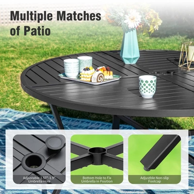 - Slat Tabletop with Umbrella Convenience: The stylish slat design enhances your outdoor space while ensuring easy cleaning, and the 1.57″ diameter umbrella hole allows for effortless shade during sunny days.