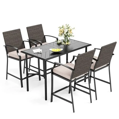 - Spacious and Durable Design: Our larger bar height table comfortably seats 4-6 people, crafted from all-metal steel for exceptional durability, making it perfect for family gatherings and outdoor dining.