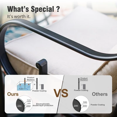 - Robust and Long-Lasting Build: Crafted with an E-coating and powder-coated steel frame, this set is designed to endure outdoor conditions, ensuring lasting enjoyment.