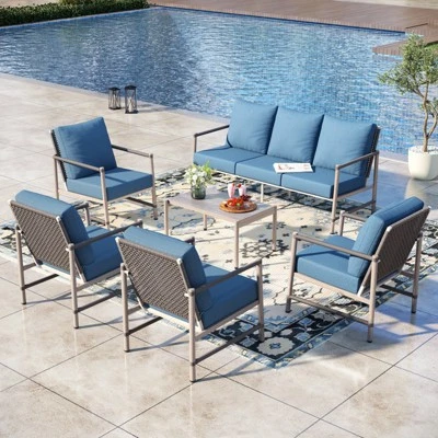 - Outdoor-Ready: Made with UV-resistant PE rattan and rust-resistant metal protection, this set is built to withstand the elements. The adjustable sofa legs ensure stability on uneven surfaces.
