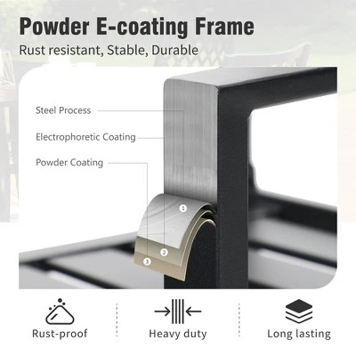 - Robust and Long-Lasting Build: Crafted with an E-coating and powder-coated steel frame, this set is designed to endure outdoor conditions, ensuring lasting enjoyment.