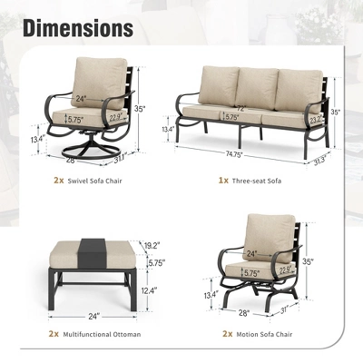 - Luxurious Cushions: The 5.75″ thick cushions are filled with 28D non-phenol foam, offering exceptional support and resilience for lasting comfort. The back cushions provide excellent lumbar support, making it perfect for hours of relaxation.