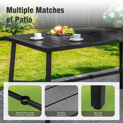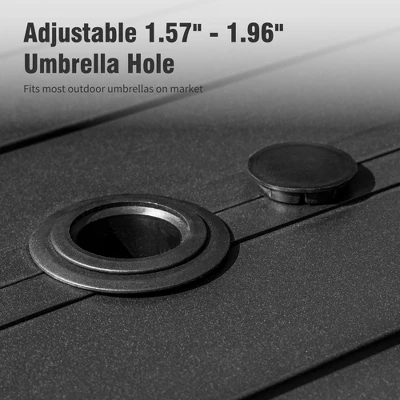 - Stylish and Functional Design: The patio bar table features a classic 67.0″L x 35.5″W slat tabletop with a 1.57″ umbrella hole, providing a chic addition to any outdoor space while comfortably seating 4-6 people for a relaxing experience.