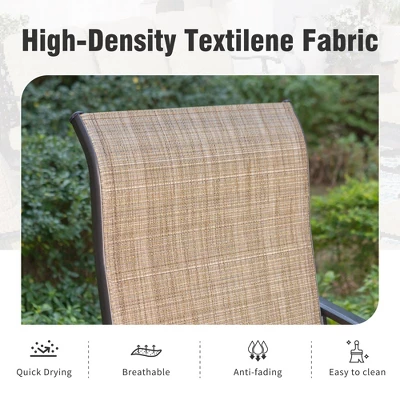 - Breathable Textilene Sling Fabric: The seats feature breathable Textilene Brown sling fabric for comfort and ventilation and support up to 300 lbs for long-lasting outdoor use.