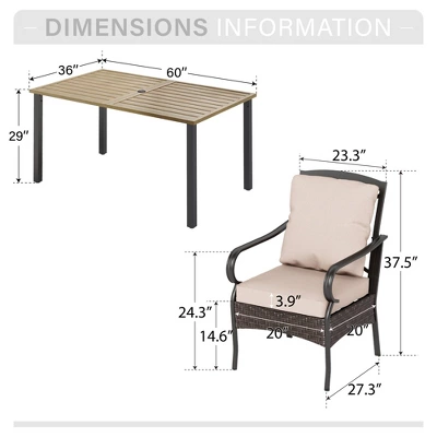 - 1.57″ Umbrella Hole: The dining table comes equipped with a 1.57″ umbrella hole, allowing for shade on sunny days, enhancing your outdoor dining experience.