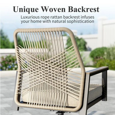 - Stylish and Durable Design: Crafted from hand-woven weather-resistant rattan, these outdoor chairs combine modern aesthetics with long-lasting durability, ensuring they remain a beautiful addition to your space.