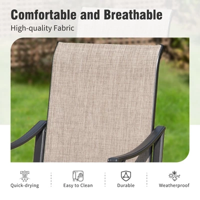 - All-Weather Textilene Fabric: The chairs, with 300 lbs Capacity, are equipped with Textilene fabric that is weather-resistant, UV resistant, and easy to clean, ensuring long-lasting quality.