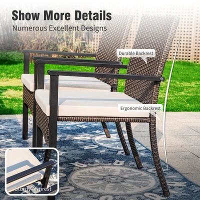 - Ergonomic Design for Optimal Support: These all-weather wicker chairs are designed with extra width and a contoured backrest, offering superior lumbar support to ensure a comfortable sitting posture during long outdoor meals.