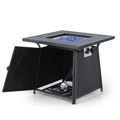 Captiva Designs 7pc Steel & Wicker Outdoor Square Fire Pit Furniture Set With Cushions