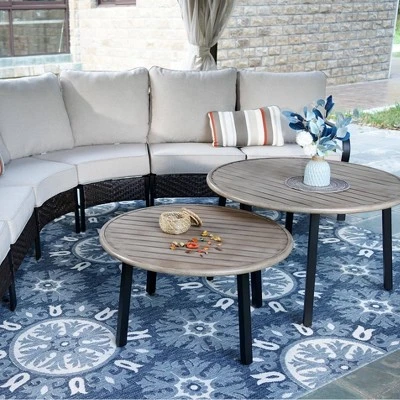 - Stylish & Functional Coffee Tables: Featuring a natural wood-look finish crafted from durable, rot-resistant materials, these two round tables with varying heights and sizesadd elegance to any outdoor space.