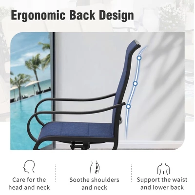 - Breathable Padded sling fabric: The seats and backs of the chairs are made from breathable, Padded Blue sling fabric, ensuring comfort and preventing moisture buildup.