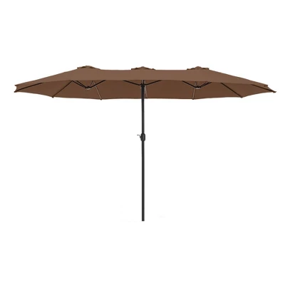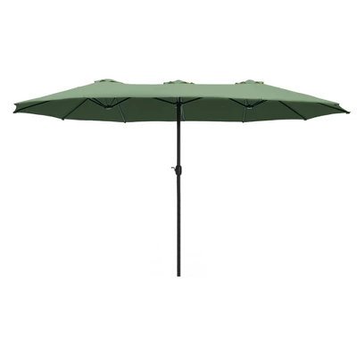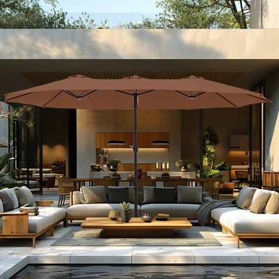 [CAPTIVA DESIGNS]Upgrade your outdoor space with the 15′ x 9′ Rectangular Outdoor Patio Market Umbrella, a perfect blend of style and functionality. This elegant, oversized umbrella is designed to provide ample shade for your patio, deck, or outdoor seating area, ensuring your comfort during sunny days and cozy evenings. [Specification]]Pole Dimensions: 1.9 Inches [Dia] x 7.5 Feet [H]Umbrella Dimensions: 15 Feet [Dia] x 15 Feet [L] x 9 Feet [W]Umbrella Weight: 41.9 Pounds [Packages Includes]Umbrella x 1Base x 1