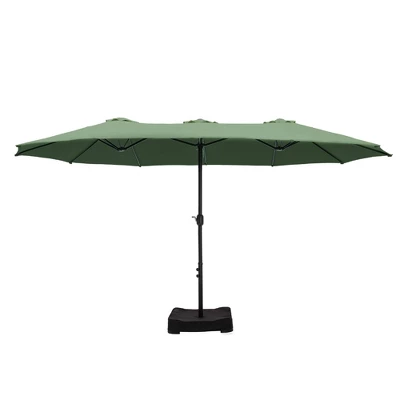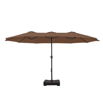 [ CAPTIVA DESIGNS ]Elevate your outdoor experience with the 15′ x 9′ Rectangular Patio Market Umbrella, where style meets practicality. This spacious, double-sided umbrella offers generous shade for your patio, deck, or seating area, keeping you comfortable on sunny days. Crafted for durability with a rust-resistant steel frame, it’s the perfect addition for both residential and commercial spaces. Transform your outdoor retreat today! [Specification]Pole Dimensions: 1.9 Inches [Dia] x 7.5 Feet [H]Umbrella Dimensions: 15 Feet [L] x 9 Feet [W]Umbrella Weight: 44 Pounds [Packages Includes]Umbrella x 1Sandbag x 2
