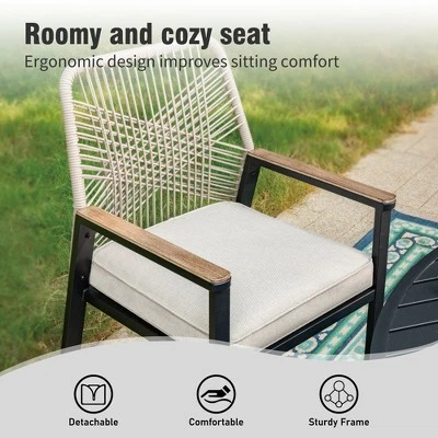 - Stylish and Durable Design: Crafted from hand-woven weather-resistant rattan, these outdoor chairs combine modern aesthetics with long-lasting durability, ensuring they remain a beautiful addition to your space.
