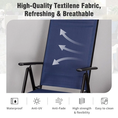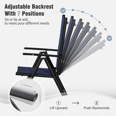 - Adjustable Reclining Comfort: The Black sling chairs feature seven adjustable recline settings, ranging from 100° to 135°, allowing for personalized comfort during various activities.