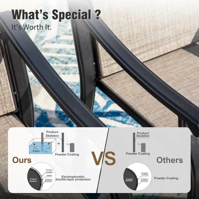 - Robust and Long-Lasting Build: Crafted with an E-coating and powder-coated steel frame, this set is designed to endure outdoor conditions, ensuring lasting enjoyment.