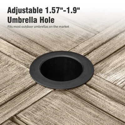 - Integrated Umbrella Hole: Equipped with a 1.57″ pre-cut umbrella hole in the center, it accommodates most market umbrellas for convenient UV protection.
