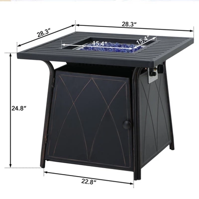 [CAPTIVA DESIGNS]Transform your outdoor space into a cozy retreat with the Captiva Designs 28-Inch 50,000 BTU Metal Gas Fire Pit Table. This versatile piece not only creates a warm ambiance for gatherings with family and friends, but it also serves as a dining, coffee, or bar table. Crafted from durable metal, it features a stainless steel fire bowl and burner for long-lasting performance. With a quick 30-second ignition and adjustable flame settings, you can effortlessly set the perfect mood. The concealed base accommodates a standard 20 lbs propane tank (not included), offering convenient access while maintaining a sleek look. Whether hosting a barbecue or enjoying a quiet evening, this fire pit table enhances any outdoor experience.Specification