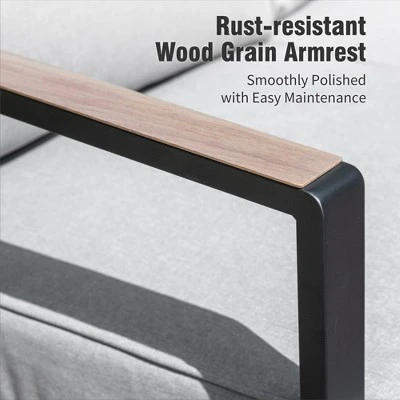 - Ergonomic High-Back Design: Relax in luxury with a 32″ high backrest and wood-grain armrests, designed for full-body support whether sunbathing or chatting with friends.