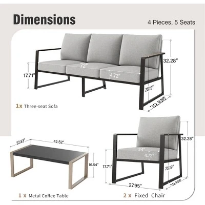 Transform your outdoor space into a stylish retreat with the Captiva Designs Modern Patio Set. This contemporary collection combines sleek black metal frames with plush, weather-resistant cushions for unbeatable comfort that lasts. The breathable Textilene fabric keeps you cool while the ergonomic high-back design invites complete relaxation. Entertain effortlessly with the spacious coffee table, perfect for drinks and snacks. Built to withstand the elements with rust-resistant technology and easy-care fabrics, this set brings modern elegance to your garden, balcony or backyard – creating the perfect setting for memorable moments under the sun or stars. Where comfort meets durability in timeless style.