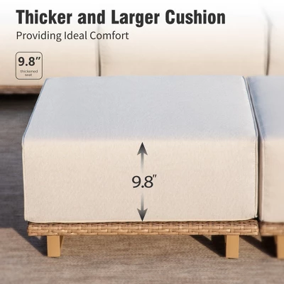 Transform your outdoor space into a luxurious retreat with our premium wicker patio sectional sofa. Designed for ultimate relaxation, this modular set invites you to sink into plush, cloud-like cushions that cradle your body while the innovative T-shaped backrest supports perfect posture. The elegant rattan construction isn’t just beautiful – it’s built to withstand seasons of sunshine and gatherings. Whether you’re creating an intimate conversation nook or a spacious lounging area, the flexible modular design adapts effortlessly to your outdoor oasis. Wide, comfortable armrests and thoughtful details elevate every moment, from morning coffees to sunset cocktails with friends. This is where lasting memories are made in complete comfort and style.