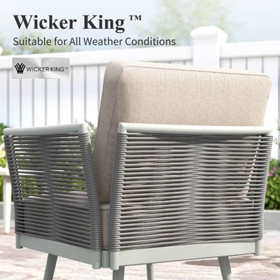 - Handwoven Rattan for Natural Charm: Premium rope rattan, meticulously woven by hand, adds organic texture to the armrests and backrests. The earthy gray tones blend seamlessly into outdoor oasis.