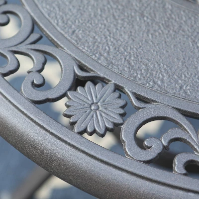 This bistro table is characteristic and distinctive in its grillwork and cast aluminum material.Treated with special bronze to ward off the possibility of rust and tarnish.