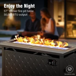 Captiva Designs 4pc Extra Large Metal And Rattan Outdoor Patio Fire Pit Set With Armchairs